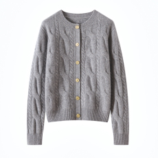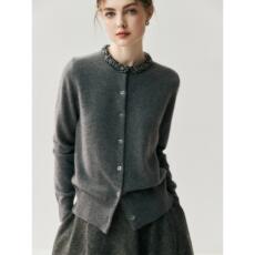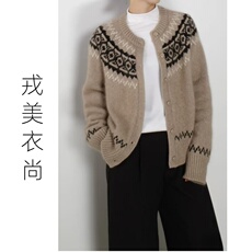 戎美衣尚纯山羊绒开衫女圆领复古外套针织衫软糯欧货毛衣宽松上衣