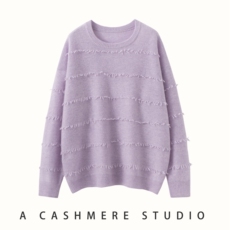 2025秋冬新款圆领蛋糕宽松加厚保暖五角星100山羊绒毛衣
