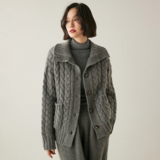 100%羊绒衫女开衫25秋冬新款纯山羊绒针织外套半高领系扣宽松毛衣