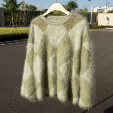 红莲高端轻奢100%纯山羊绒衫女拉绒菱形圆领宽松显瘦针织衫毛衣