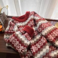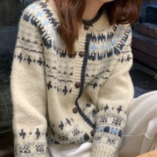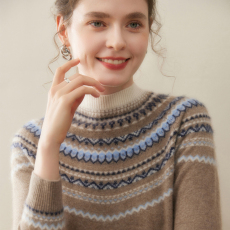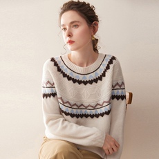 2025秋冬新款复古提花圆领山羊绒衫女费尔岛宽松减龄套头毛衣
