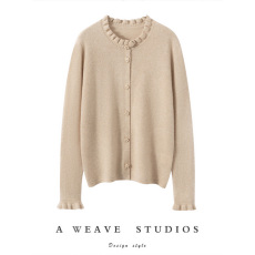 秋冬新款100%纯山羊绒针织开衫女木耳花边领毛衣羊绒外套宽松上衣