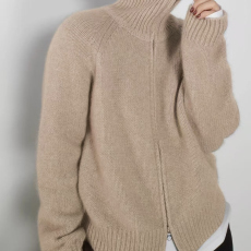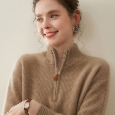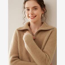 2025秋冬新款山羊绒衫女半高领加厚半拉链宽松毛衣针织打底羊绒衫
