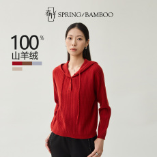 【轻柔引力】春竹2025秋冬新款100%山羊绒连帽套衫舒适针织衫女