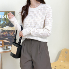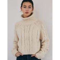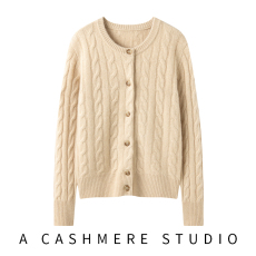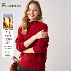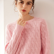 帕罗100山羊绒秋冬长袖立体细腻绞花气质圆领套头针织毛衣女