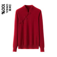 2024新中式立领针织衫100%纯山羊绒衫女宽松加厚中国风侧盘扣毛衣