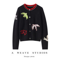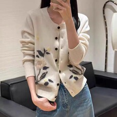飞燕刺绣山羊绒开衫女外套宽松长袖秋冬新款时尚提花针织打底毛衣