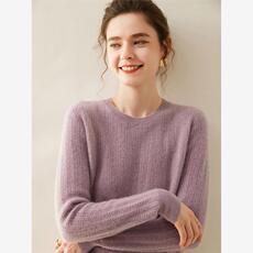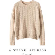 100%山羊绒套头毛衣女加厚25秋冬新款宽松大码圆领麻花针织打底衫