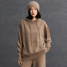 山羊绒女士连帽卫衣抽绳针织衫2025秋冬宽松带兜保暖毛衣 WS-081