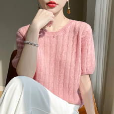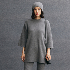 2025年新款山羊绒衫女圆领中长款针织衫宽松短袖毛衣打底衫上衣