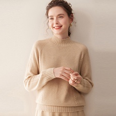 半高领羊绒衫女加厚亲肤山羊绒毛衣插肩袖宽松打底衫