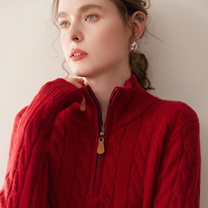 羊范25秋冬新款七针双股加厚山羊绒针织衫女半拉链疙瘩针长袖毛衣
