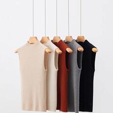 A规100%纯山羊绒马甲女半高领针织打底衫无袖毛衣内搭背心