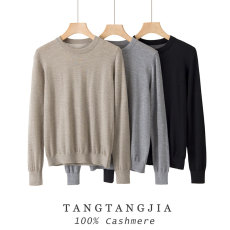 内蒙古产100%纯山羊绒精纺女打底衫圆领宽松秋冬保暖套头内搭毛衣