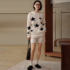 2025秋冬季新款100%纯山羊绒衫女连帽星星毛衣套头加厚宽松针织衫