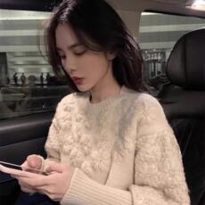 重磅秋冬新款圆领山羊绒开衫女宽松慵懒风毛衣加厚针织衫保暖外套