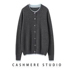 圆领撞色100%纯山羊绒开衫女学院风外搭2025秋冬假两件厚毛衣外套