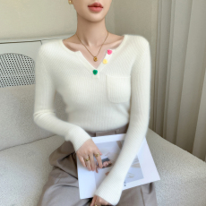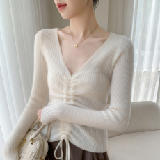 2025秋冬新款山羊绒衫女半开领加厚宽松V领毛衣针织打底羊绒衫
