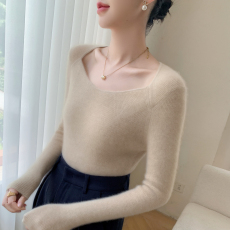 2025冬季新款山羊绒衫女士方领纯色针织衫亲肤毛衣百搭羊毛打底衫