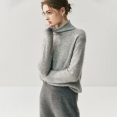 云朵质感~堆领baby桑蚕丝小山羊绒女显瘦内搭长袖套头毛衣打底衫