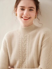 秋冬新款山羊绒衫女半高领加厚宽松扭花毛衣针织打底羊绒衫