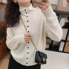 半高领多扣山羊绒针织开衫女25秋冬新款打底毛衣宽松百搭长袖外套