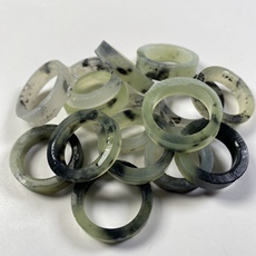 岫玉天然水墨戒圈岫玉跑环指环冰料子半成品未抛光方形水墨圈指环