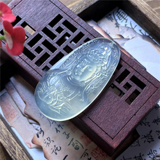 岫玉高冰观音吊坠巧雕意境冰料男女款玉石挂件镜花水月生日礼物证