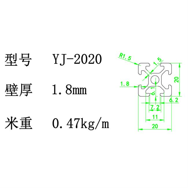 2020R圆弧铝型材 铝材 欧标铝合金2020R工业铝材
