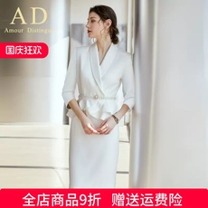 米白色西装套裙职业套装女播音主持人正装上镜演讲正式场合工作服