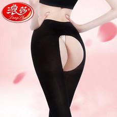 浪莎120D免脱连裤袜春秋冬款性感天鹅绒双面开裆镂空女中厚丝袜