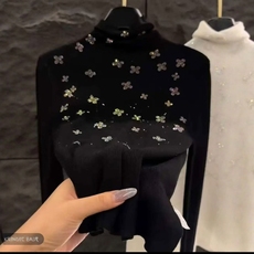 半高领蜜熊绒毛衣女套头2025秋冬新款韩系时尚气质镂空羊毛针织衫