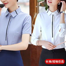女士衬衫女短袖职业正装蓝色工装白色衬衣韩版正装长袖大码工作服
