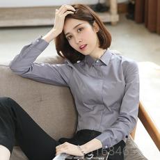 灰色v领衬衫女长袖新款职业女士上衣气质工作服工装修身白色衬衣