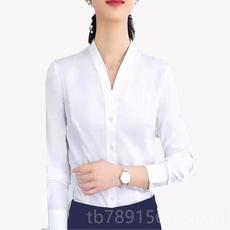 白衬衫女职业长袖寸衫女士白色衬衫工装正装V领衬衫工作衬衣秋季