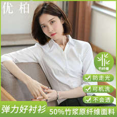 女士竹纤维衬衫白色职业工装大码修身长袖通勤商务短袖寸衫