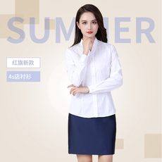 高档2店021新4款红旗女衫S修身工装女士白色衬衣职业衬工作服专属