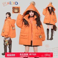 KEIKO 韩系活力橘色派克棉服25冬季抗寒拒风工装风加厚女巫帽外套