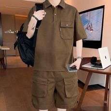 工装短袖短裤套装男夏季2025爆款一整套男士polo衫全套高档次酷帅