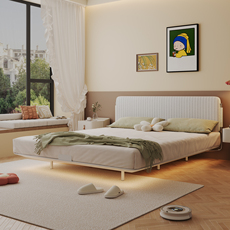 帕沙曼新款奶油风双人床主卧现代简约猫抓布艺床软包婚床头感应灯