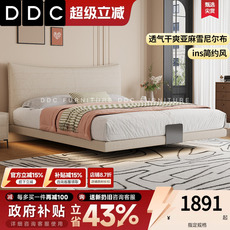 政府补贴DDC简约现代泡芙猫抓绒布艺床奶油风主卧室双人婚床1.8米