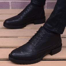 秋季布洛克真皮男鞋高帮鞋男马丁靴英伦风发型师尖头皮鞋复古短靴