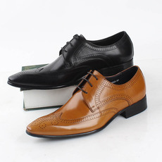 布洛克皮鞋男隐形内增高8cm男士商务正装鞋透气尖头真皮温州男鞋