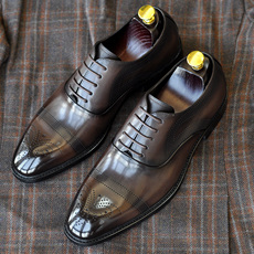 英伦复古擦色布洛克皮鞋男真皮圆头雕花商务正装皮鞋男士新郎婚鞋