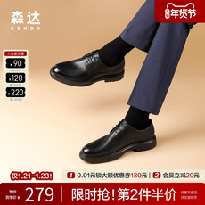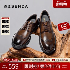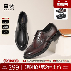 森达男鞋正装皮鞋布洛克雕花商务通勤德比鞋商场同款真皮增高婚鞋