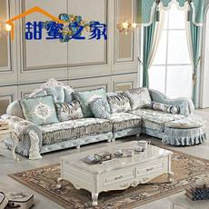欧式科技布艺沙发客厅组合实木雕花小户型转角可拆洗简单欧式沙发