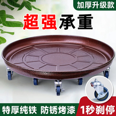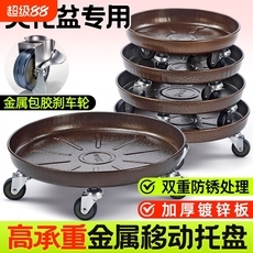 金属铁艺可移动花盆托盘带轮子圆形万向轮加厚承重滚轮滑轮接水盘