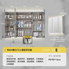 极速浴室镜柜挂墙式厕所洗手卫生B间镜子带置物架储物收纳带灯智