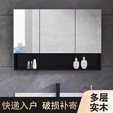 实木智能浴室镜柜单独挂墙式带灯除雾化妆室镜子抽取式卫生纸孔收