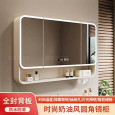 奶油挂墙式圆弧浴室镜柜卫生间智能镜箱太空铝灯光储物柜带梳妆镜